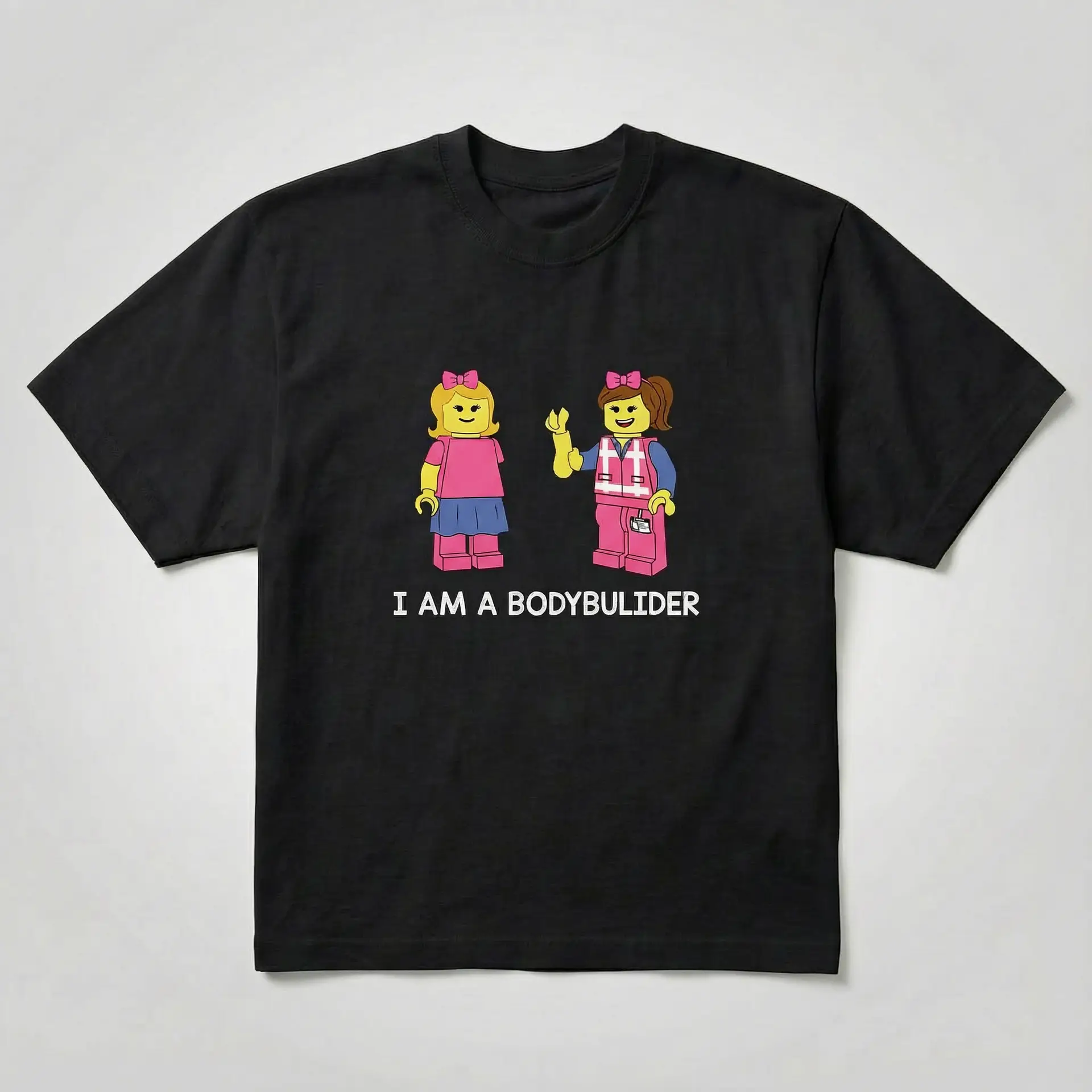 Koszulka oversize Lego Builder – połączenie siły i humoru. Wyróżnia się na siłowni i poza nią.